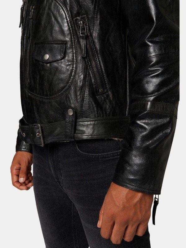 Men’s Black Leather Biker Fur Collar Jacket