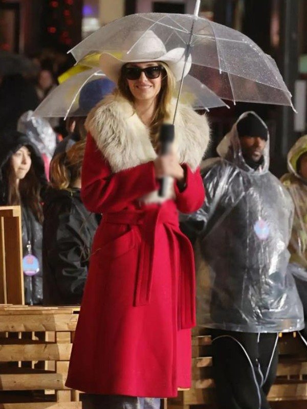 Lainey Wilson 2025 Macy’s Thanksgiving Day Parade Fur Trim Red Coat